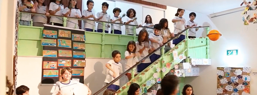 A abertura da 1ª Galeria de Artes de 2026 da Escola Vila reuniu famílias e contou com o talento dos estudantes do 4º ano em uma apresentação especial de percussão.